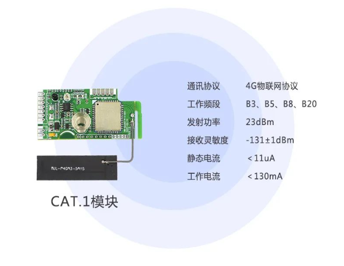 CAT.1和NB-IoT一樣無需中間傳輸設備,簡化了設備安裝與布線工作,實現了水表自動遠程抄表,有效避免了管理部門上門抄表的人力工作。具備閥門控制功能,方便管理部門對水表使用情況進行控制,每個水表都作為一個終端獨立工作,維護簡單,工作運行可靠。