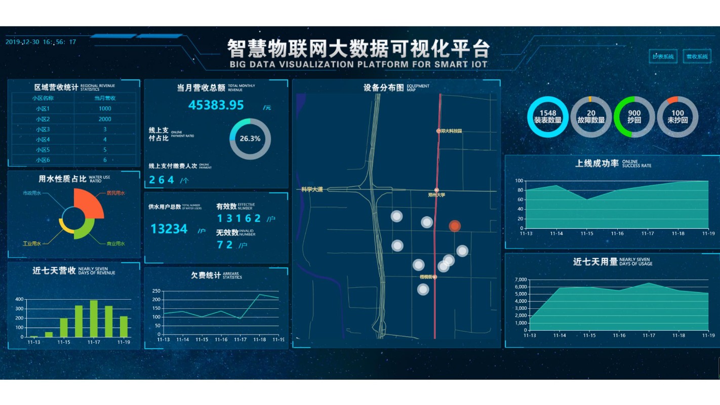 我們的智慧水務平臺集成了GIS地理信息系統、SCADA監控系統和MIS管理系統,提供全面的數據分析和決策支持功能。管理層可通過多維度的數據報表和可視化分析,制定科學的運營策略和投資規劃。