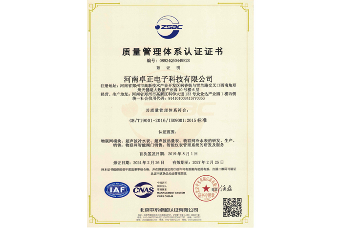 質量管理體系認證證書